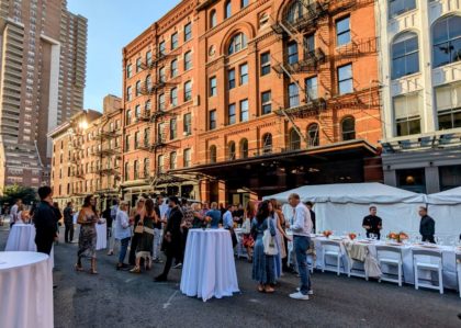 Lots of local folks help pull it off. The event is presented by Tribecan Amy Bergman Bonomi of Compass; wines come from Tribeca Wine Merchants and dessert from Duane Park Patisserie. Other sponsors include park neighbors 60 Hudson Owner LLC and Aztech Mountain; Michelle Griffith from Douglas Elliman; The Greenwich Hotel; American Express; and ARC Athletics.