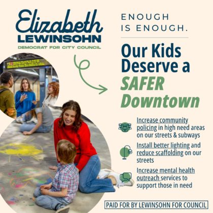 A mayoral candidate among us. Plus patches for local pier parks; a repair finally gets made on Hudson; the newly renovated Finn Square gets another bench.