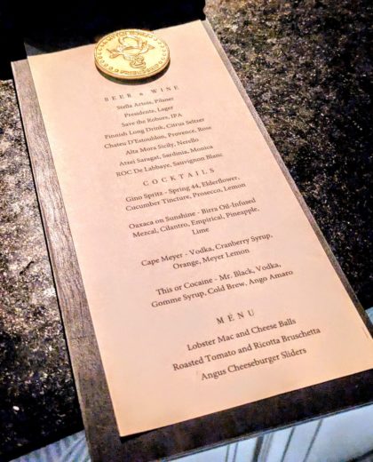 The space is small — 40 people max, but 20 would be a lot of fun — and special. Owner Aron Watman has created a bookshelf as a door with the snake’s tail pointing the way from upstairs, leather banquettes, leather stools, good lighting. There will be seasonal cocktails created by bartenders from Attaboy and other hotspots. He’s even minted a coin that he can pass out to guests upstairs as collateral for a drink in the speakeasy.