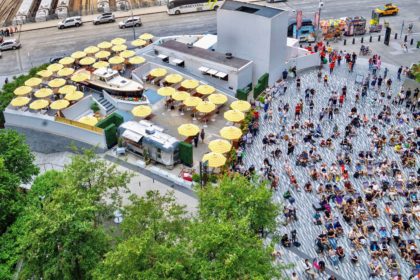 The brothers from Grand Banks — Tribecan Alex Pincus and Miles Pincus — have beached a lobster boat at Hudson Yards to create a 200-seat bar and restaurant called Sailor’s Choice. Great use of that plaza.