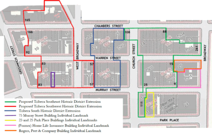For its late-nineteenth and early-twentieth-century “tall office buildings”, the Gerken Building and the Irving National Bank Building, which together with the historic towers in the Tribeca West Historic District represented a distinct building type reflecting a wave of interest in speculative office development in Tribeca West during this period of time, as personified by Frederick Gerken, the developer of these two buildings within the proposed district extension.