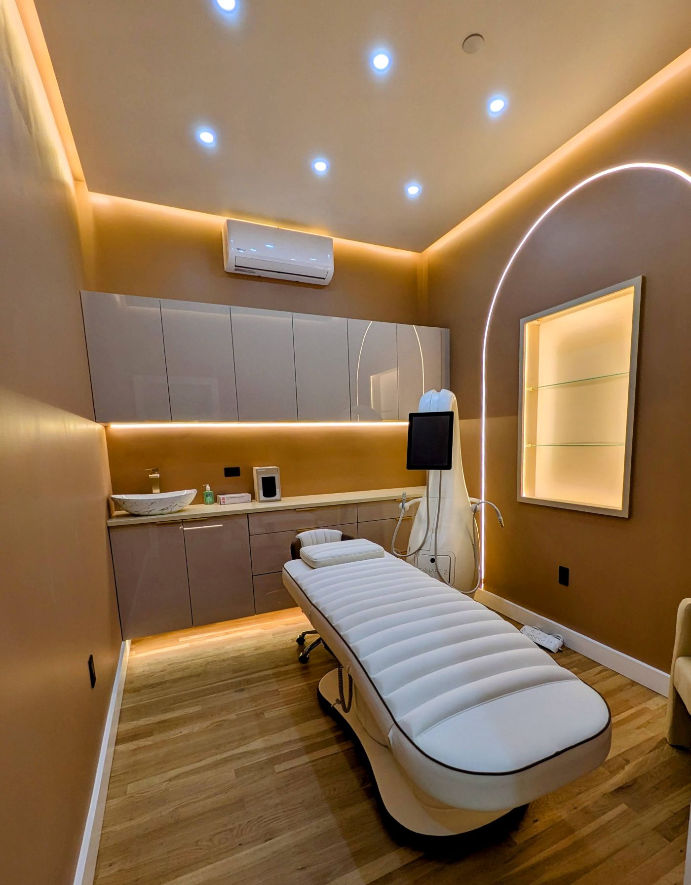 Shamsha has been in the aesthetics business for 15 years and worked with her now partner, Amir Rostamirad, from 2017 until 2022. He has had several medical aesthetics spas, and in this space they are trying to combine that with wellness therapies and treatments so everything is on one spot.