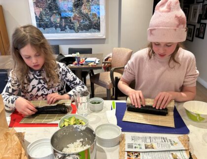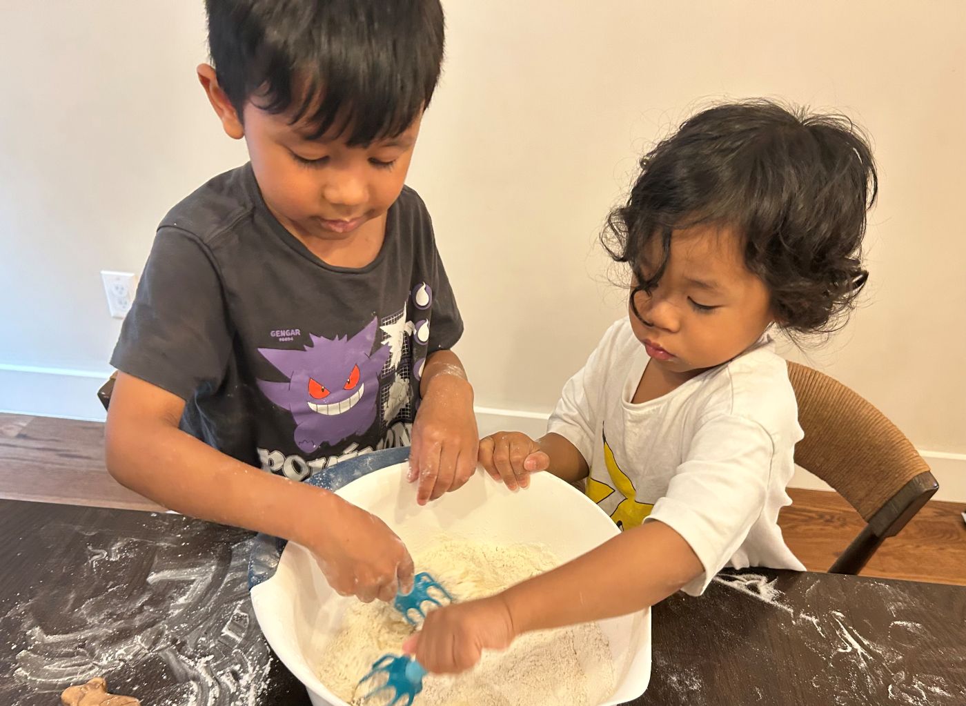Each session is about an hour and they make everything from scratch. She talks to the families first to come up with the menu, and the families buy the ingredients in advance. She tries to plan the classes so she and her little chefs can taste their dishes together; she will usually do a smaller project while the dish is in the oven. A class is $150 for two kids, with $25 additional per child.