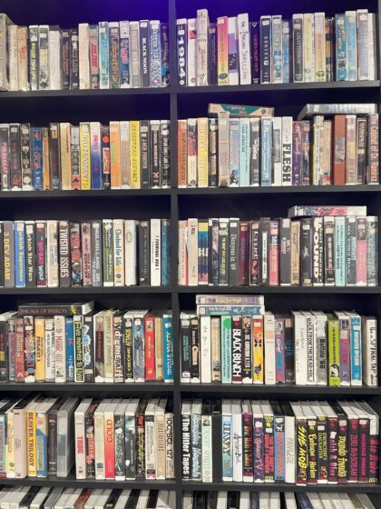 This awesome tip from Tribecan Jolene Howard: she discovered a free VHS rental spot underneath the Alamo Drafthouse — Kim’s Video, which since 1986 was in Alphabet City and several Village locations, including Mondo Kim’s on St. Mark’s Place, until closing in 2009.