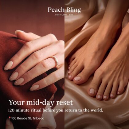 Introducing Happy Hour Ritual: Structured Gel Mani-Pedi from Peach Bling, offered every day before 3PM, a 120-minute immersion in calm and care, designed to restore balance both physically and mentally.