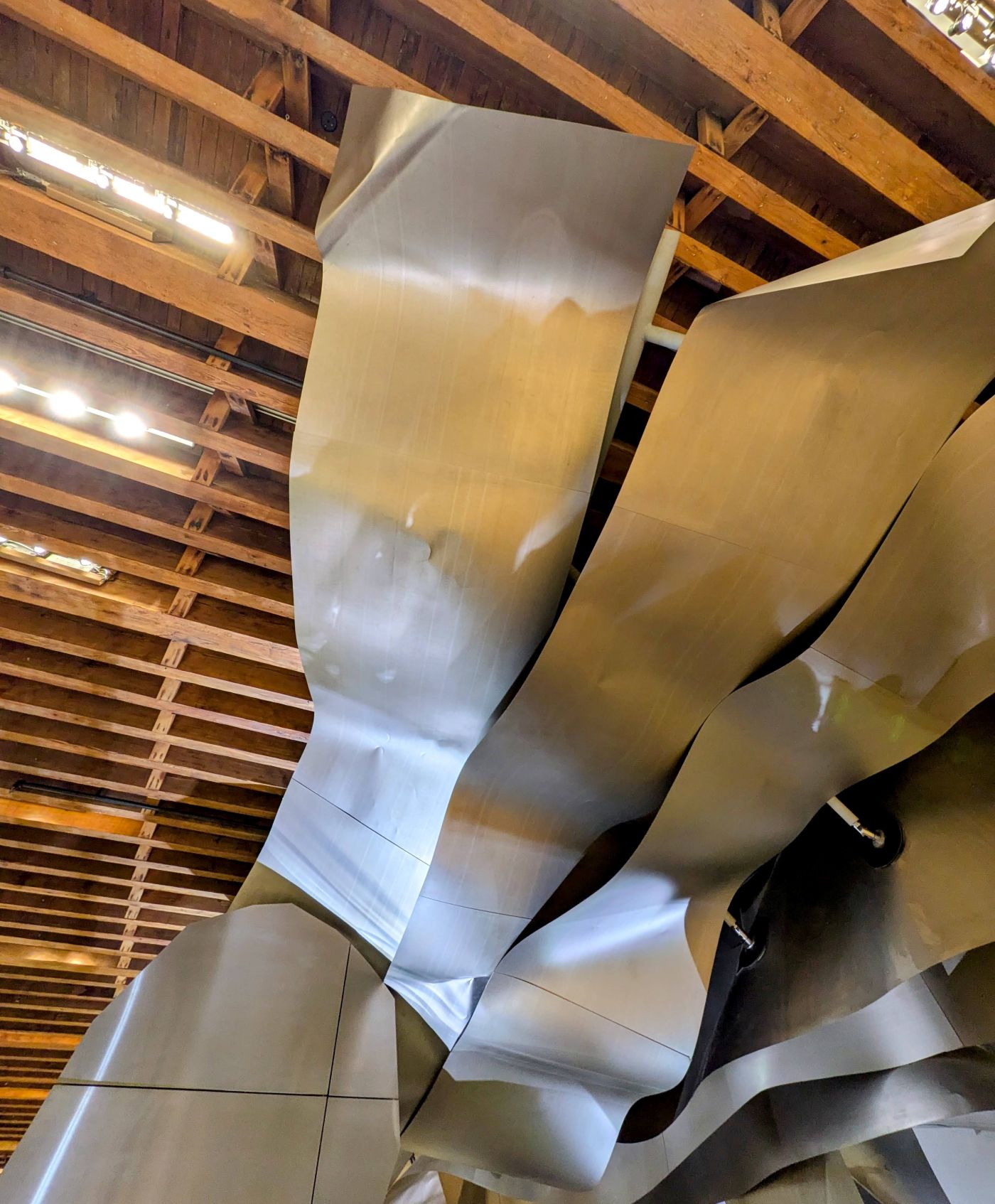 If you have even 10 minutes this week, wander into the Issey Miyake store — its last day on Hudson will be Friday, December 12. First, the staff there is lovely. Second, there’s a big sale! But most of all, this is the final chance to see the interiors designed in 2001 by Frank Gehry, who died last week at 96. In the past, the store did not allow pictures — that’s why they are never in the TC Shop-Local Gift Guide — but with the whole operation packing up, it’s fair game.