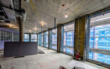 The building has been under construction since 2022, when LePera first broke ground hoping for an 18-month build (they paused while the market turned around). He is now hoping for a certificate of occupancy to be ready in May — April if he’s especially lucky. The end result: a six-story building with a partial seventh floor for a penthouse, all clad in etched bronze panels.