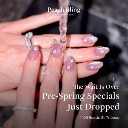 Peach Bling specializes in structured gel manicures, a Japanese-inspired technique known for lasting strength and a flawless finish — using TPO-free and HEMA-free formulas and gentle cuticle care for a health-conscious, elevated experience.