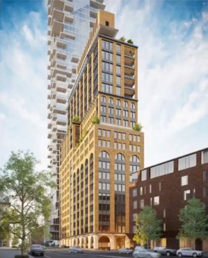 If approved by City Planning, the new building will rise 314 feet including mechanicals — another 107 feet above the current structure. The developers are Skylight Real Estate Partners, Cannon Hill Capital Partners, and TPG, and the architect of record is Hill West Architects. The build year is 2029.