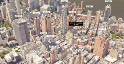 The new 250 Church Street/101 Franklin’s renderings show a desirable solidness, with a maximum height similar to many of Tribeca’s older buildings. I don’t expect that the height would garner criticism, especially with unconventional neighboring buildings such as the fortress-like AT&T Long Lines, and the stacked-boxcar Jenga tower across the street.