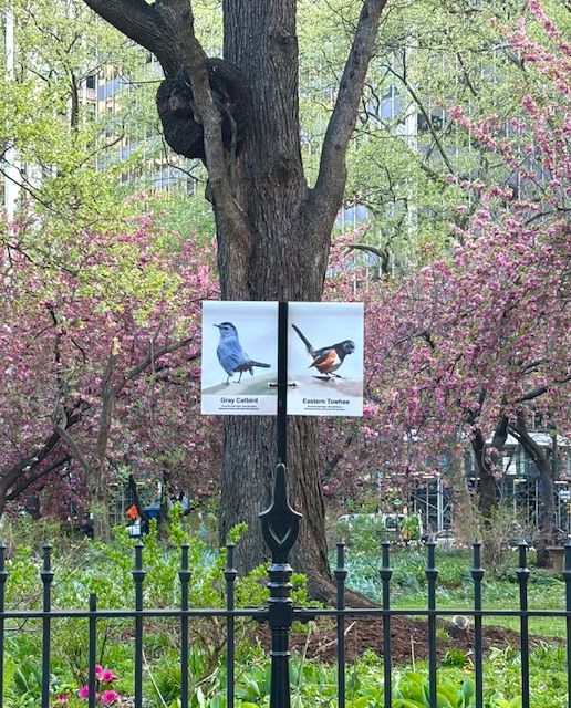Downtown naturalist photog Gail Karlsson has her photos of local birds on new vinyl lamppost banners in City Hall Park. The Friends of City Hall Park will also be doing bird crafts for kids tomorrow, Earth Day, Wednesday, April 22, from noon to 4p.